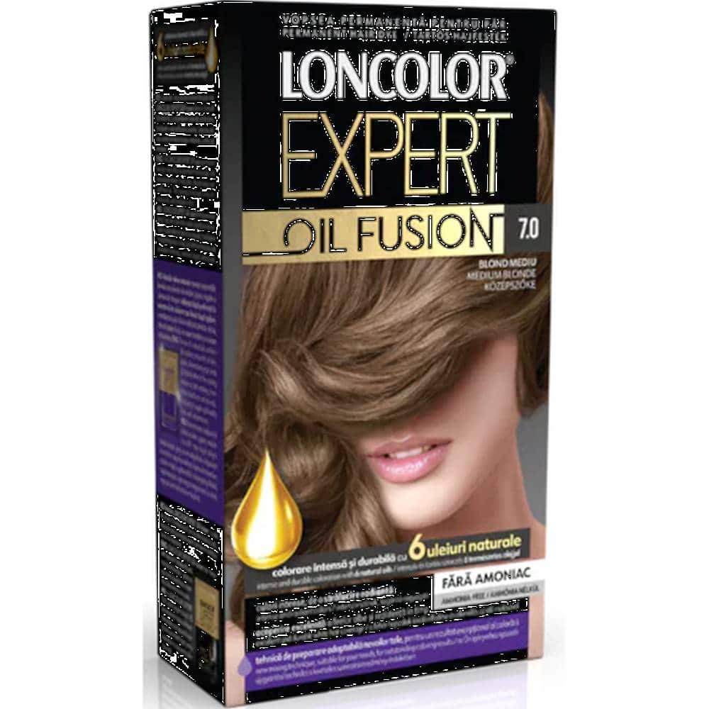 LONCOLOR EXPERT Oil Fusion Vopsea de Păr 7.0 Blond Mediu este alegerea ideală pentru cei care își doresc o culoare naturală, intensă și de durată, fără a compromite sănătatea părului. Formula sa îmbogățită cu uleiuri prețioase asigură protecție și hidratare, oferind un blond mediu elegant, luminos și uniform, cu un aspect sănătos și plin de vitalitate.
